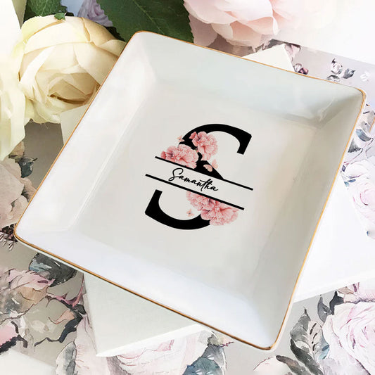 Alphabet With Birth Month Flower - Personalized Jewelry Dish
