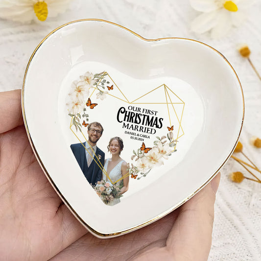 Our First Christmas Married - Personalized Heart Shaped Jewelry Dish