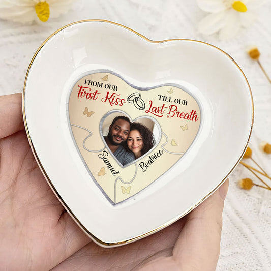 From Our First Kiss Till Our Last Breath - Personalized Heart Shaped Jewelry Dish