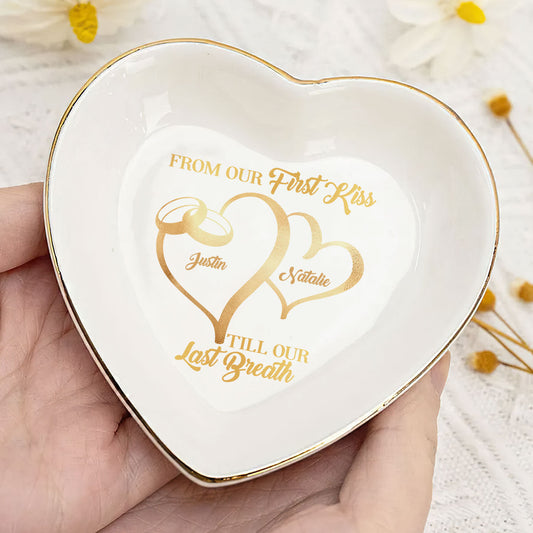 From Our First Kiss Till Our Last Breath - Personalized Heart Shaped Jewelry Dish
