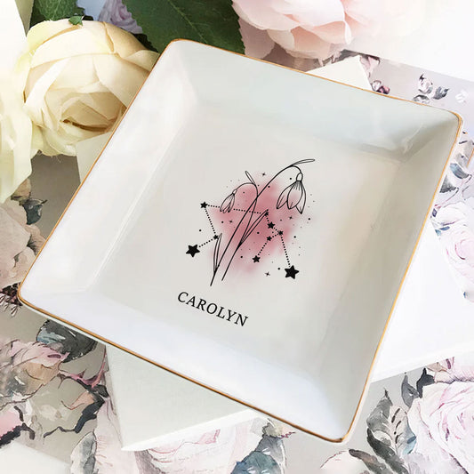 Birth Month Zodiac Flower - Personalized Jewelry Dish