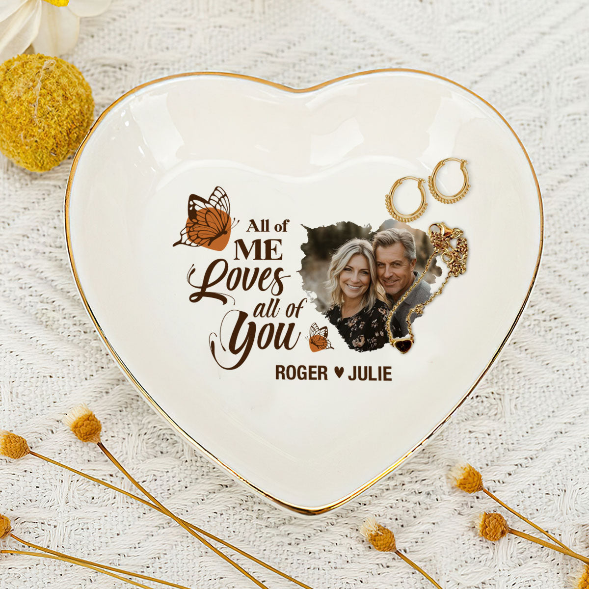All Of Me Loves All Of You - Personalized Heart Shaped Jewelry Dish