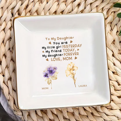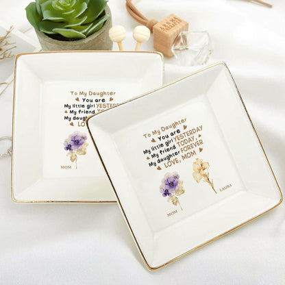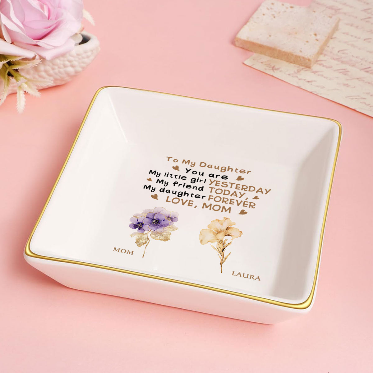 To My Daughter Birth Month Flower - Personalized Jewelry Dish