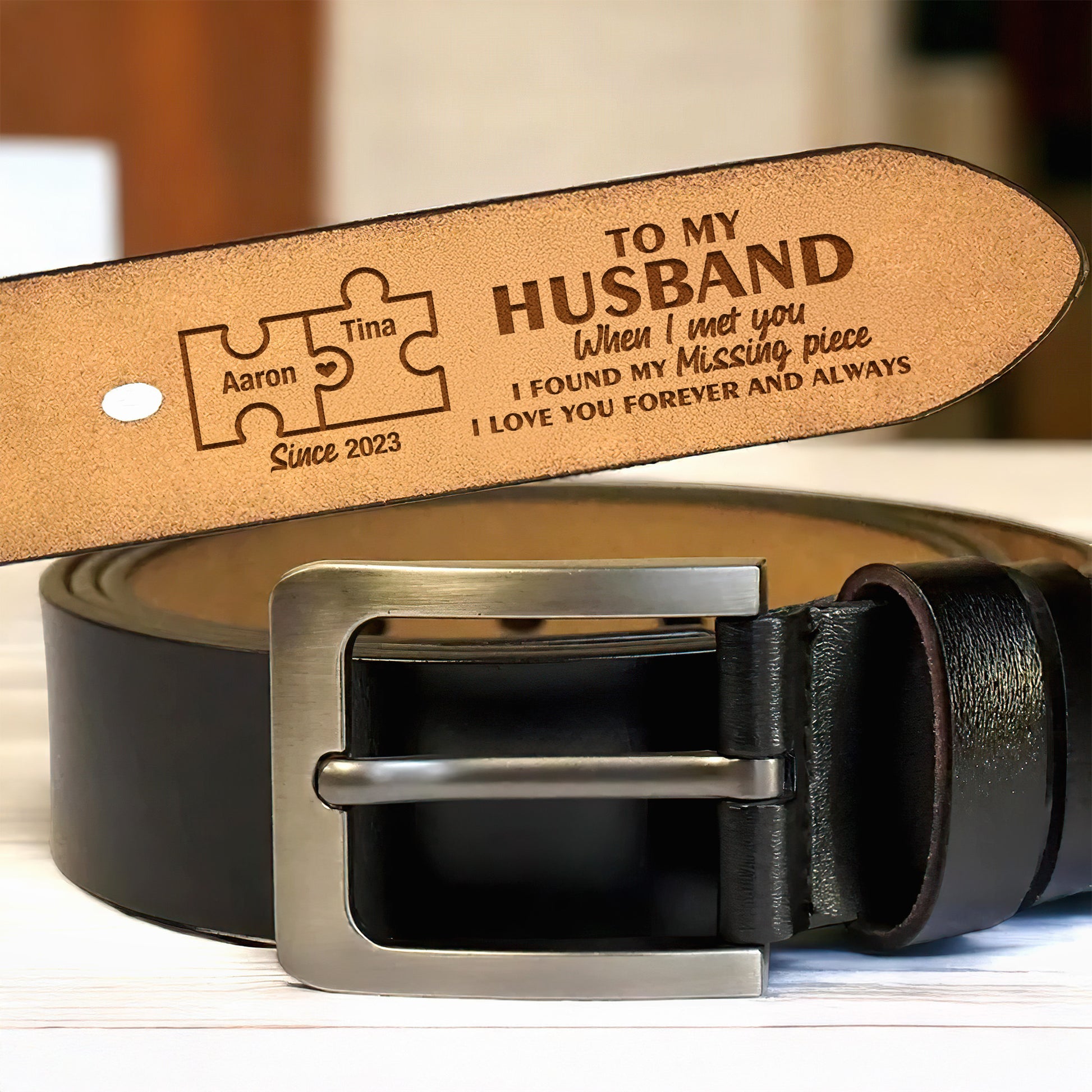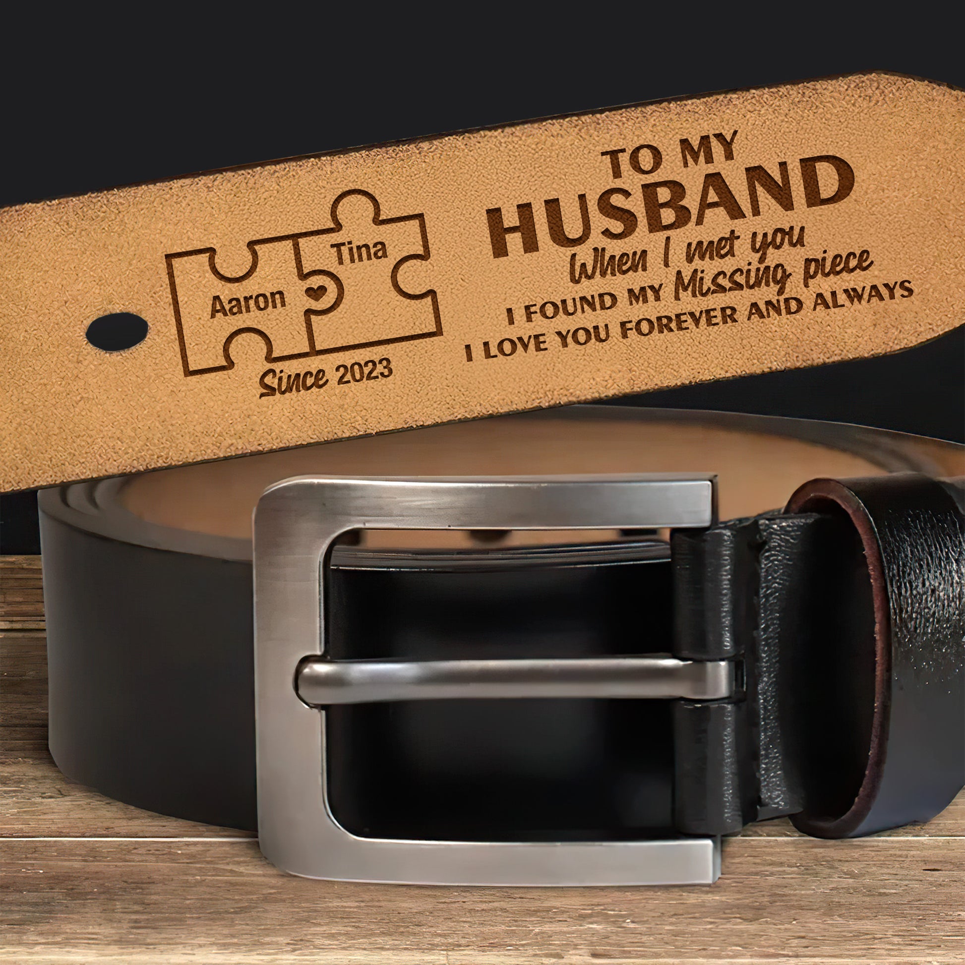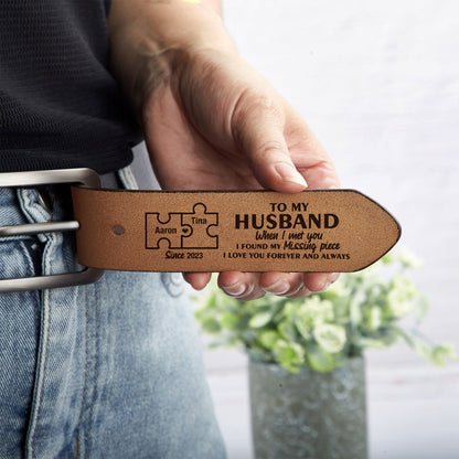 When I Met You I Found My Missing Piece - Personalized Engraved Leather Belt