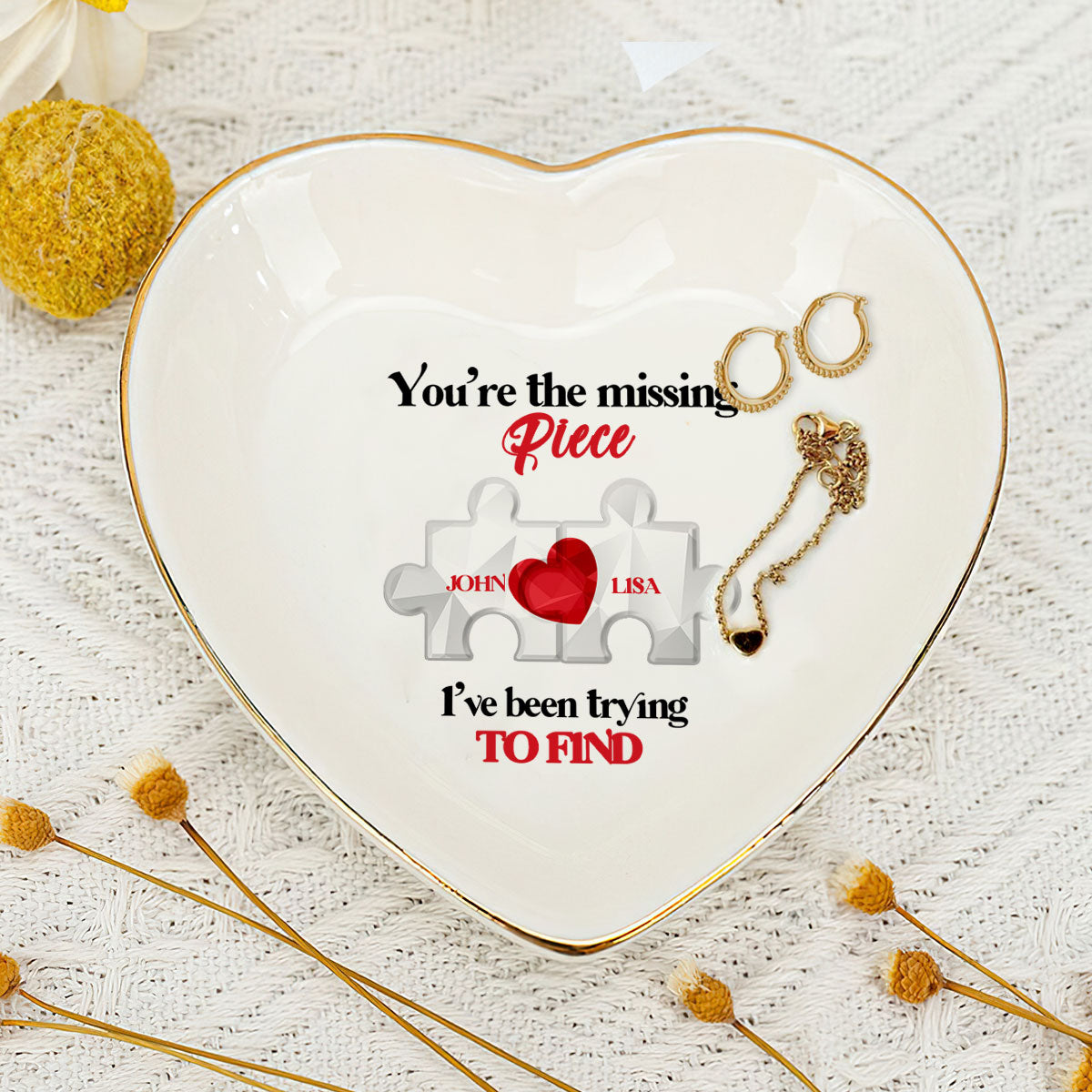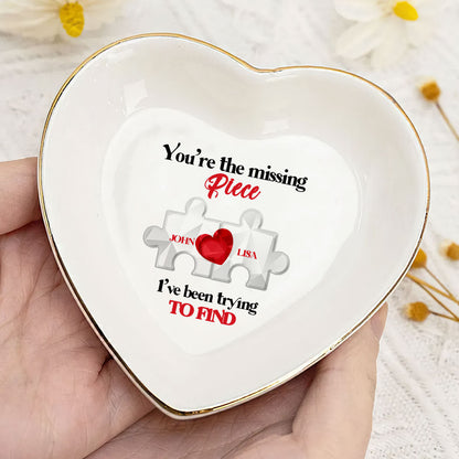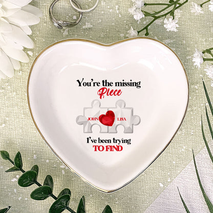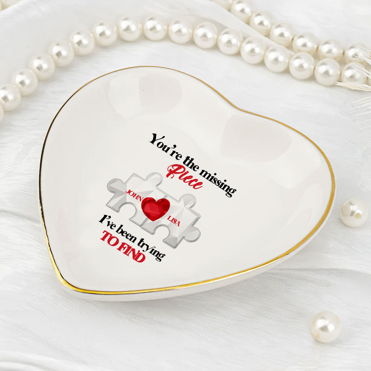 You're The Missing Piece I've Been Trying To Find - Personalized Heart Shaped Jewelry Dish